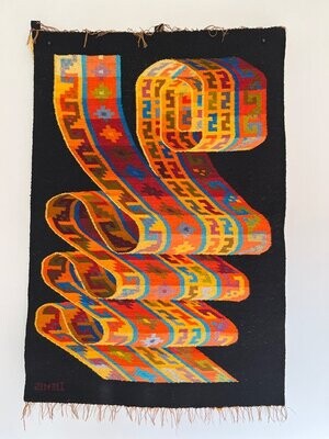 A radiant and fascinating optical three dimensional illusion tapestry with a grand explosion of earthy tones and vibrant colours.